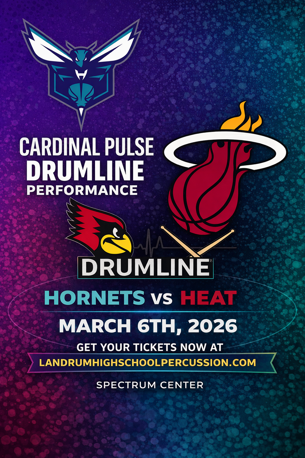 Ready to experience the electrifying performances of the CARDINAL PULSE DRUMLINE?. Get your tickets today and be a part of the rhythm. Each ticket you purchase puts $5 directly back into our percussion program. This vital funding helps us provide enriching experiences for our students, from travel opportunities to acquiring the best equipment. Your support makes a real difference!